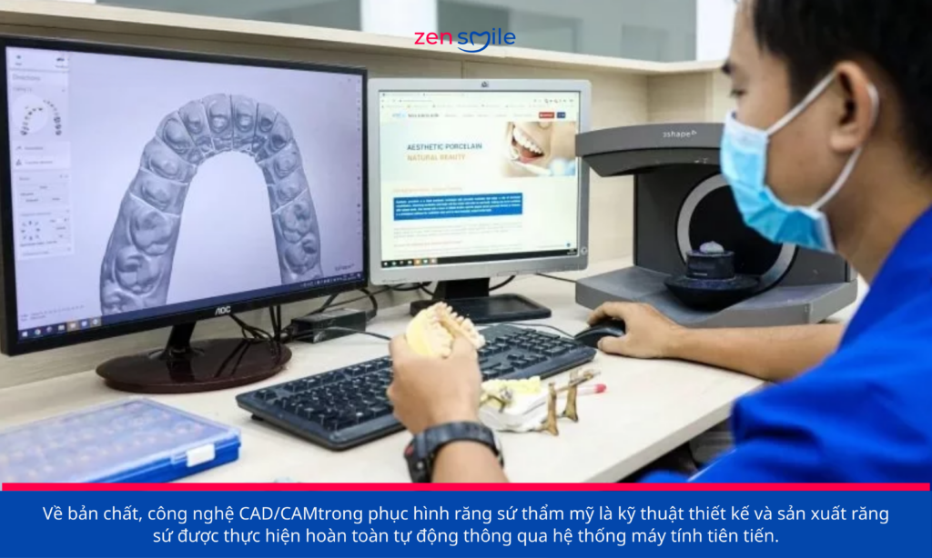 Thuật ngữ CAD/CAM được viết tắt từ Computer-Aided Design (Thiết kế có sự hỗ trợ của máy tính) và Computer-Aided Manufacturing (Sản xuất có sự hỗ trợ của máy tính). Về bản chất, đây là kỹ thuật thiết kế và sản xuất răng sứ được thực hiện hoàn toàn tự động thông qua hệ thống máy tính tiên tiến.