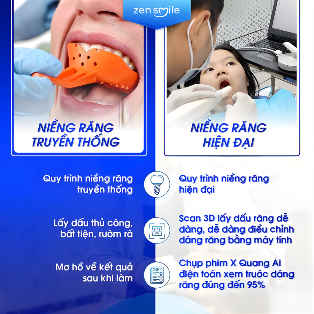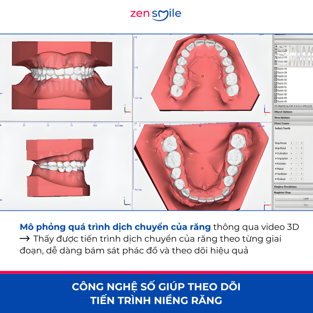 Tại Zensmile, việc ứng dụng công nghệ số như scan 3D, mô phỏng kết quả và phân tích AI nằm trong triết lý chỉnh nha toàn diện — không chỉ làm đều răng, mà còn đảm bảo vận hành khớp cắn hài hòa, lực kéo kiểm soát và kết quả ổn định lâu dài. Các bước này giúp cả bác sĩ và khách hàng đồng hành rõ ràng hơn trong từng giai đoạn chỉnh nha, từ khi bắt đầu cho đến khi tháo niềng.Công nghệ không thay thế chuyên môn bác sĩ, nhưng là công cụ hỗ trợ đắc lực để đạt được kết quả chỉnh nha an toàn, hiệu quả và tin cậy hơn.