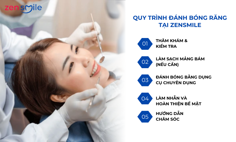 Tại Zensmile, đánh bóng răng không làm qua loa mà được thực hiện bài bản, đảm bảo an toàn cho men răng: