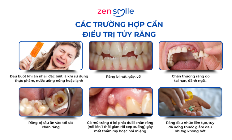 Bạn có thể cần điều trị tủy nếu gặp các tình trạng sau:
