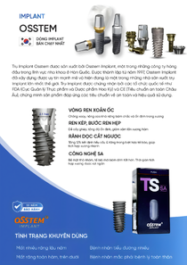 Implant Osstem là dòng trụ Implant đến từ Hàn Quốc, hiện nằm trong Top 5 thương hiệu Implant lớn nhất thế giới, được sử dụng rộng rãi tại hơn 80 quốc gia. Với đặc tính bền chắc, khả năng tích hợp xương nhanh và chi phí hợp lý, Osstem đặc biệt phù hợp cho các ca All-on-4 / All-on-6 cần phục hồi toàn hàm.Trong các ca mất răng toàn hàm, Implant phải đáp ứng đồng thời 3 yếu tố: chịu lực lớn – tích hợp xương tốt – ổn định lâu dài. Osstem được thiết kế để tối ưu chính xác những yêu cầu này.