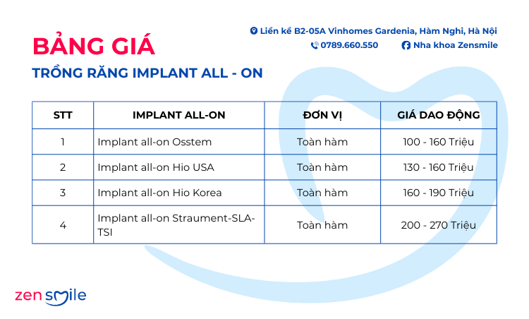 Implant All-on Osstem là lựa chọn tối ưu cho người mất răng toàn hàm muốn phục hình cố định, chắc chắn, chi phí hợp lý và thời gian điều trị nhanh. Khi được thực hiện đúng kỹ thuật tại Zensmile, giải pháp này không chỉ khôi phục chức năng ăn nhai mà còn giúp lấy lại sự tự tin và chất lượng sống lâu dài.