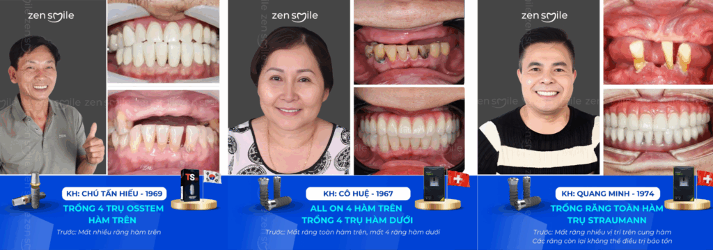 Những case thực tế tại Zensmile – từ phục hồi răng mất lâu năm, tiêu xương đến mất nhiều răng– đều cho kết quả ổn định, ăn nhai chắc chắn và thẩm mỹ tự nhiên.
