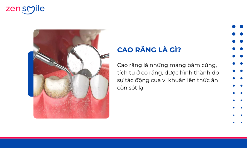Cao răng là mảng bám đã bị khoáng hóa, hình thành khi mảng bám mềm không được làm sạch triệt để và tích tụ theo thời gian. Khi đã cứng lại, cao răng không thể loại bỏ bằng cách đánh răng thông thường mà cần đến các dụng cụ chuyên dụng tại phòng khám.