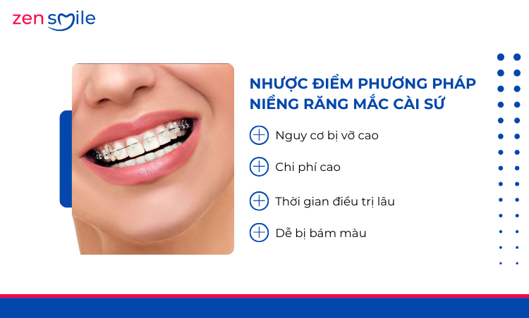 Mắc cài sứ dễ vỡ hơn mắc cài kim loại nếu va chạm mạnh.