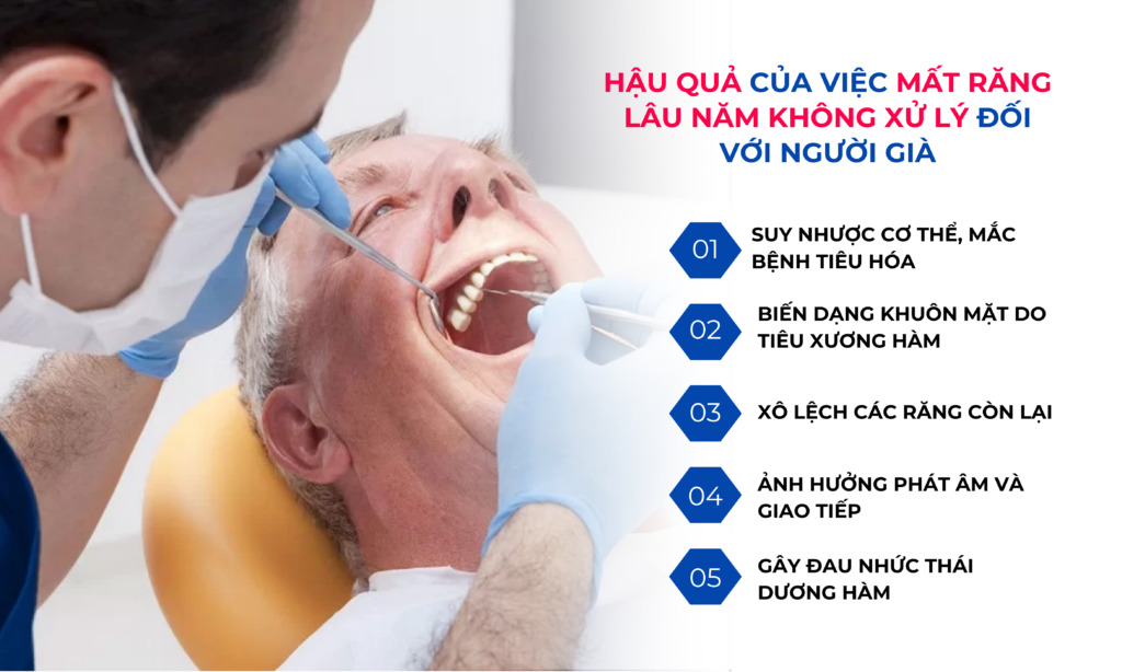 Nhiều người có tâm lý “già rồi rụng vài cái răng cũng không sao” hoặc chần chừ không muốn can thiệp nha khoa. Tuy nhiên, việc để trống vị trí mất răng lâu năm sẽ gây ra chuỗi hậu quả nghiêm trọng: