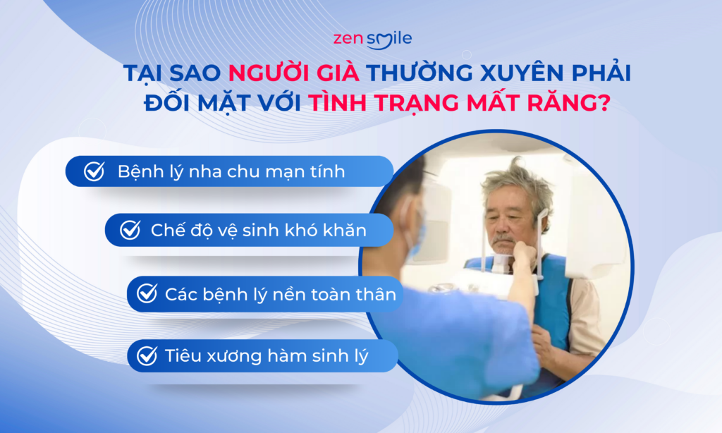 Bước vào độ tuổi xế chiều, cơ thể bắt đầu quá trình lão hóa tự nhiên, kéo theo hàng loạt vấn đề về răng miệng. Các nguyên nhân chính khiến người cao tuổi dễ bị mất răng bao gồm: