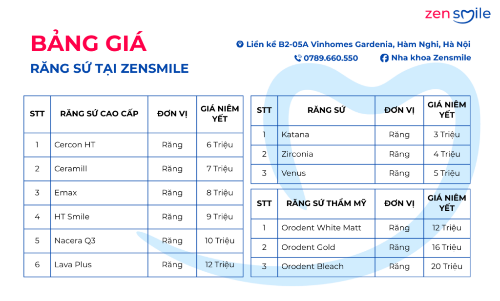 Giá của răng sứ thường phản ánh chất lượng vật liệu, công nghệ chế tác và mức độ cá nhân hóa trong quá trình thực hiện. Tuy nhiên, giá cao không đồng nghĩa với việc phù hợp hơn trong mọi trường hợp. Một lựa chọn đúng là lựa chọn cân bằng giữa nhu cầu thẩm mỹ, chức năng ăn nhai và tình trạng răng thật của mỗi người.