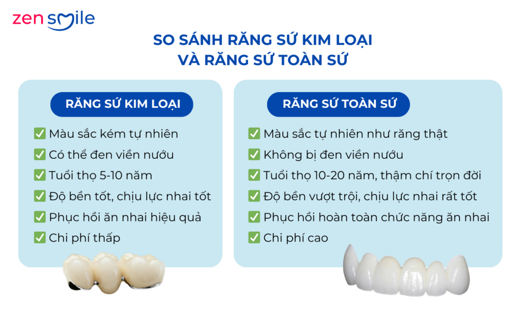 Nhóm răng sứ kim loại và những giới hạn cần biết