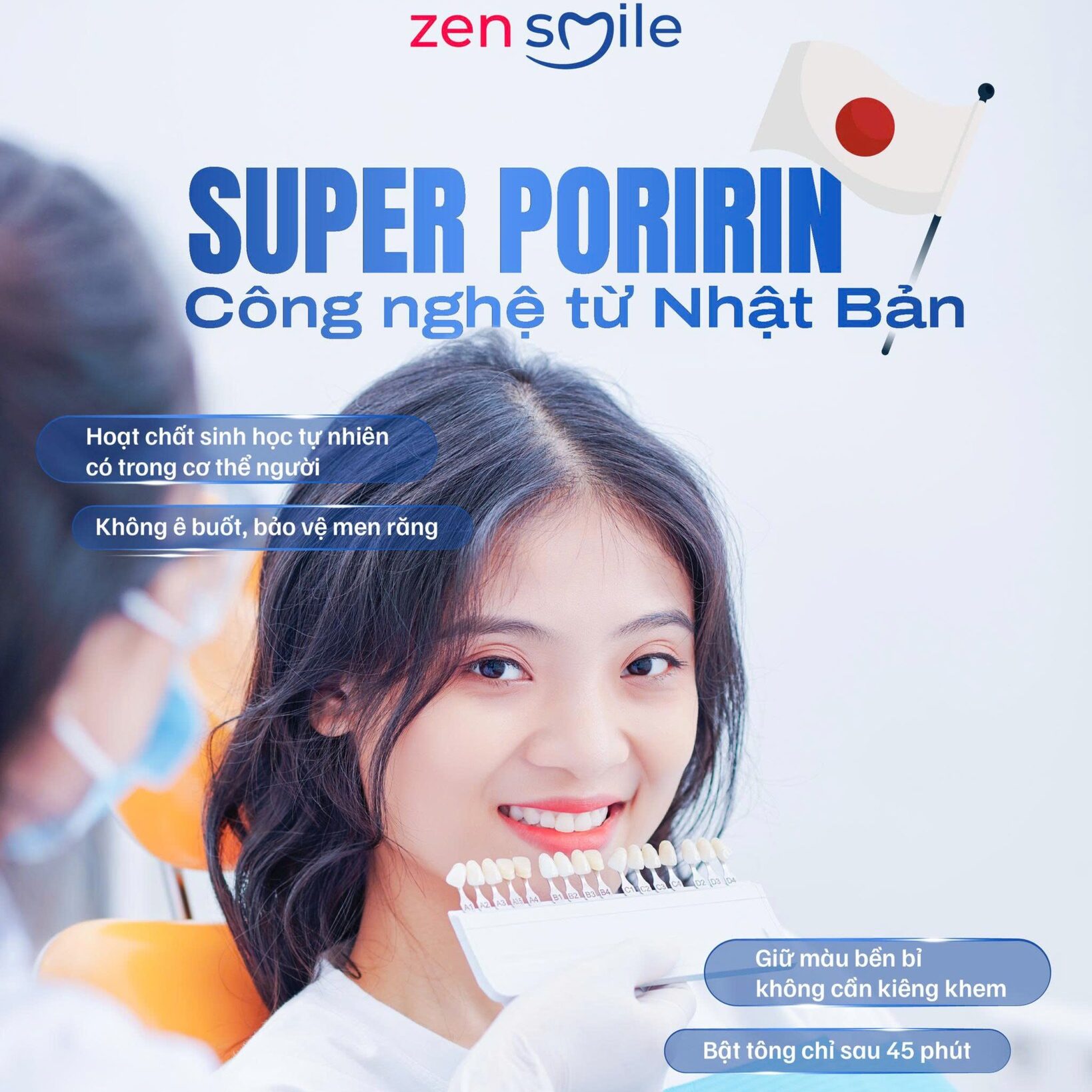 Trải nghiệm công nghệ tẩy trắng tuyệt vời này tại Nha Khoa Zensmile, bạn sẽ hoàn toàn thay đổi quan niệm về tẩy trắng răng vì Super Poririn chính là lựa chọn của những ai mong muốn sở hữu nụ cười trắng sáng và khoẻ manh.