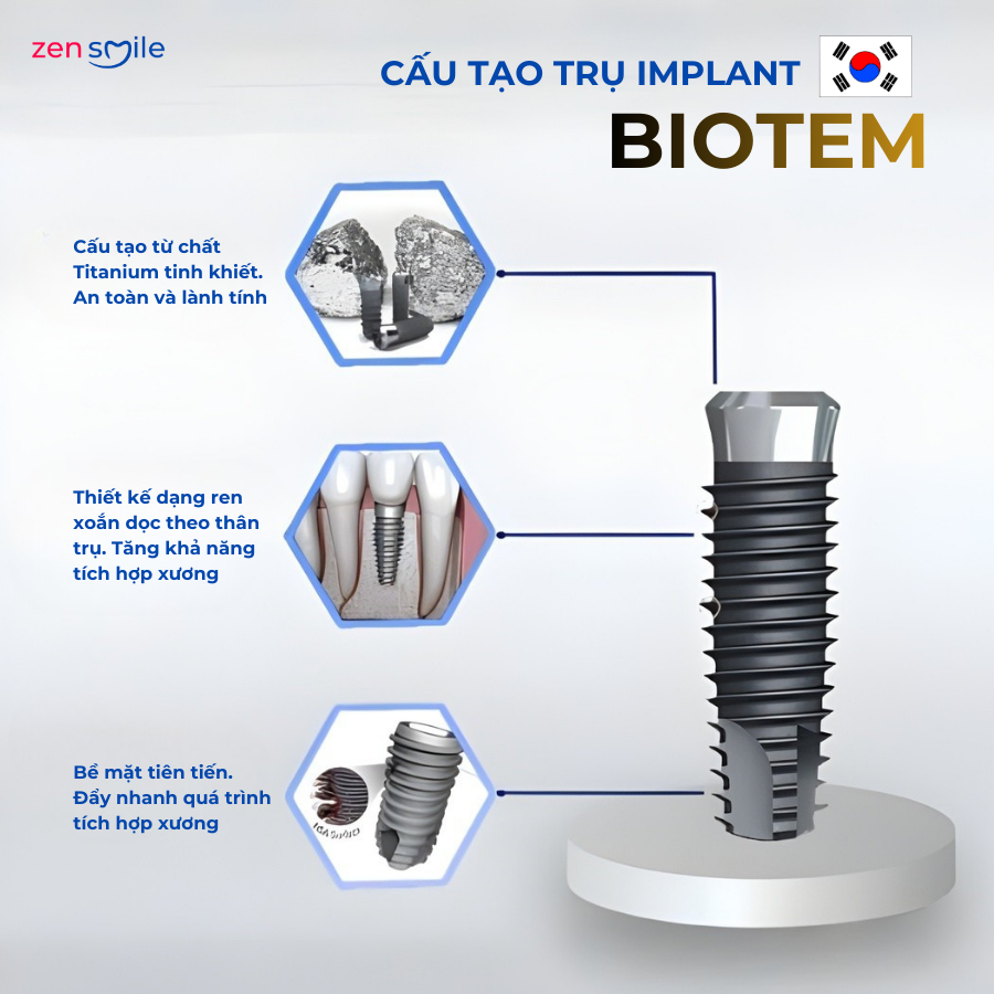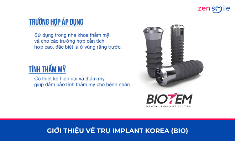 Mất răng không chỉ ảnh hưởng đến thẩm mỹ mà còn làm suy giảm chức năng ăn nhai, lâu dài gây tiêu xương hàm và lệch khớp cắn. Trụ Implant Korea (BIO) là lựa chọn phổ biến dành cho khách hàng muốn khôi phục răng đã mất một cách an toàn – hiệu quả – chi phí hợp lý, đặc biệt khi được thực hiện tại Zensmile – Dental Wellness Center với triết lý Êm từng nụ cười.