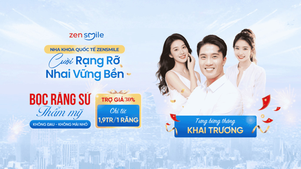 Trong tháng khai trương, Zensmile mang đến ưu đãi đặc biệt 30% cho dòng răng sứ cao cấp công nghệ Ultra Bioshine Diamond, chi phí chỉ từ 1.990.000đ/răng, kèm quà tặng giá trị đến 10 triệu đồng.